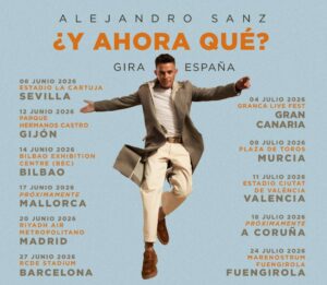 Alejandro Sanz regresa a España en 2026 con su esperada gira “¿Y Ahora Qué?”, un tour que lo llevará por las principales ciudades del país. El artista madrileño fusionará sus grandes clásicos con los éxitos de su nuevo disco, ofreciendo a los fans una experiencia única.