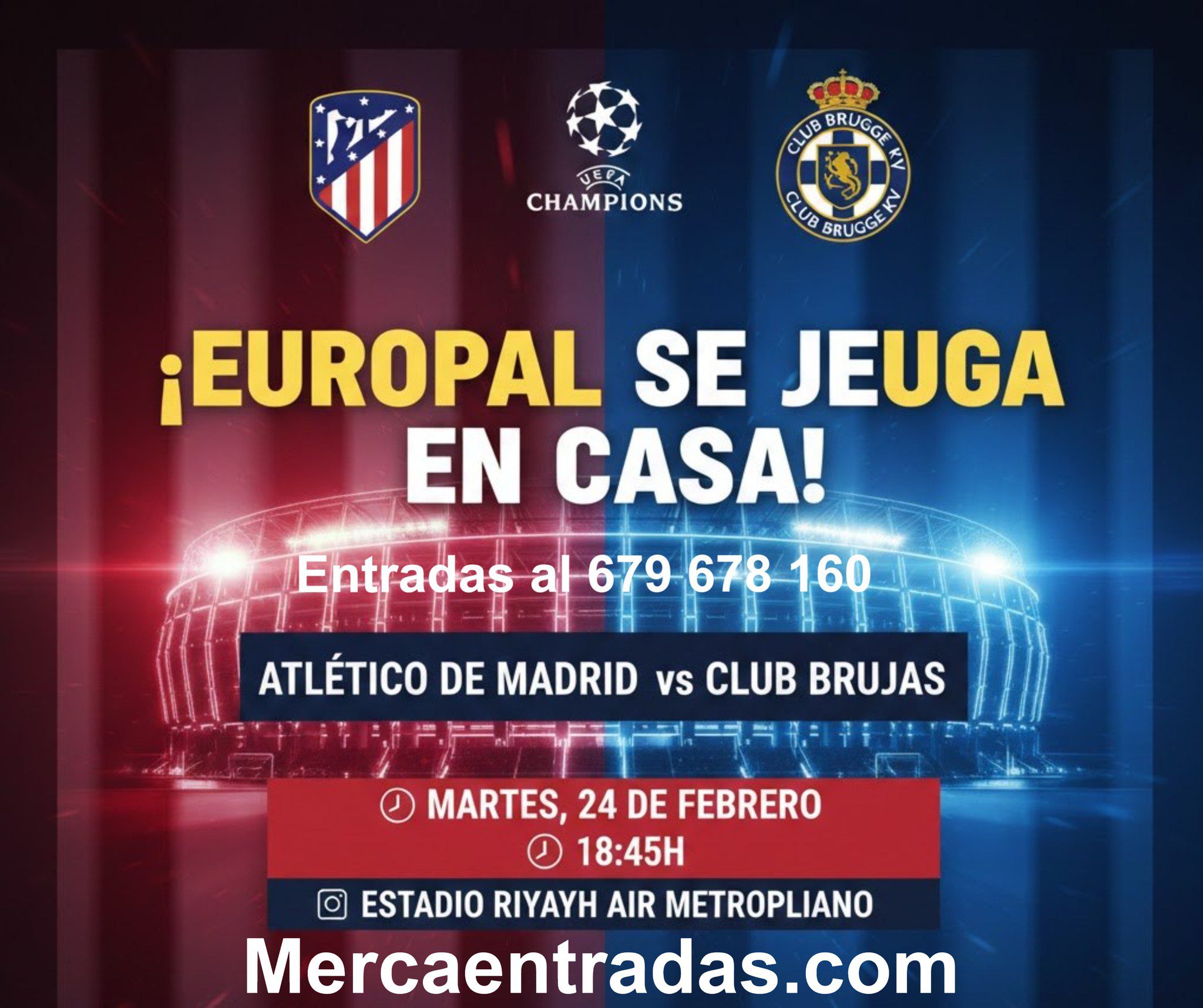 Compra ahora tus entradas para el Atlético Madrid vs Club Brugge y vive una noche inolvidable de fútbol europeo el 25 de febrero de 2026 en el espectacular Riyadh Air Metropolitano, en Madrid.