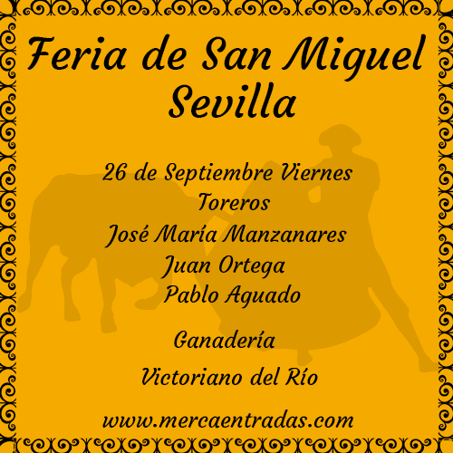 Entradas toros feria de San Miguel en Sevilla , a celebrar el Viernes día 26 de Septiembre.